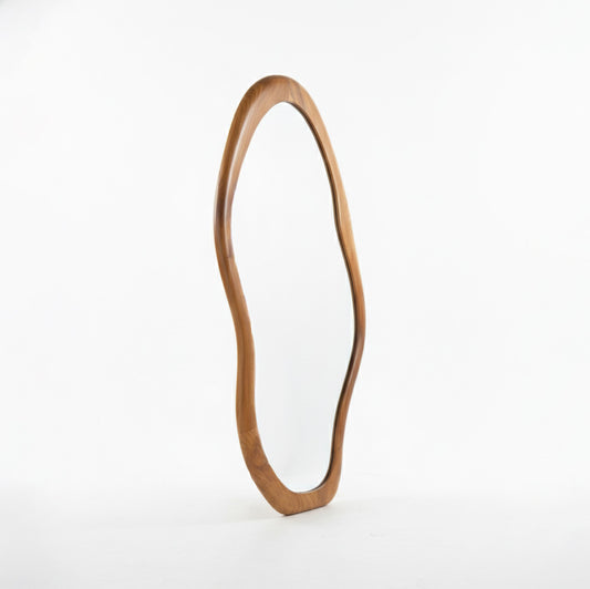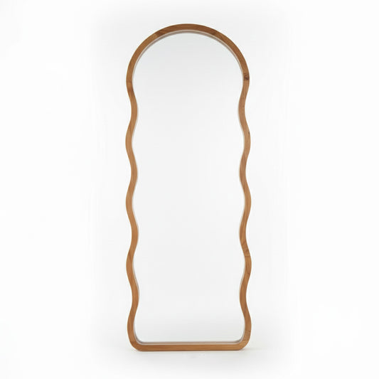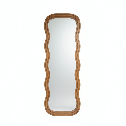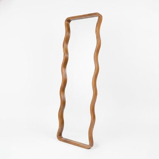 Wooden Wavy Mirror 'Asri' - Natural - 170 x 60 cm