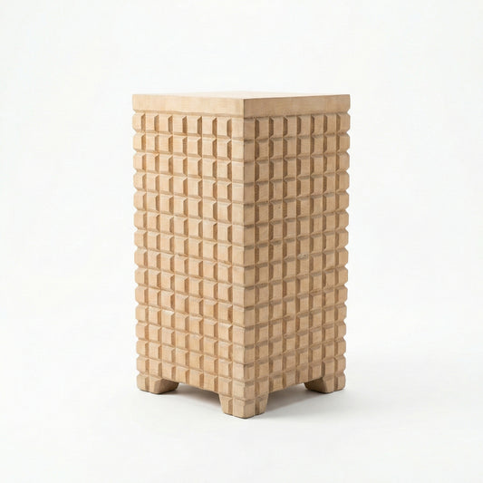 Sculptural Wooden Side Table / Stool 'Suari' in Natural - 50 x 50 cm