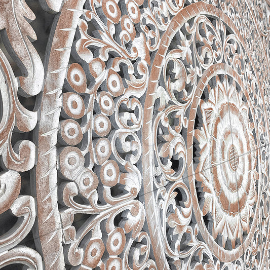 Carved Bed Headboard "Ayunina" - Antic Wash - USA