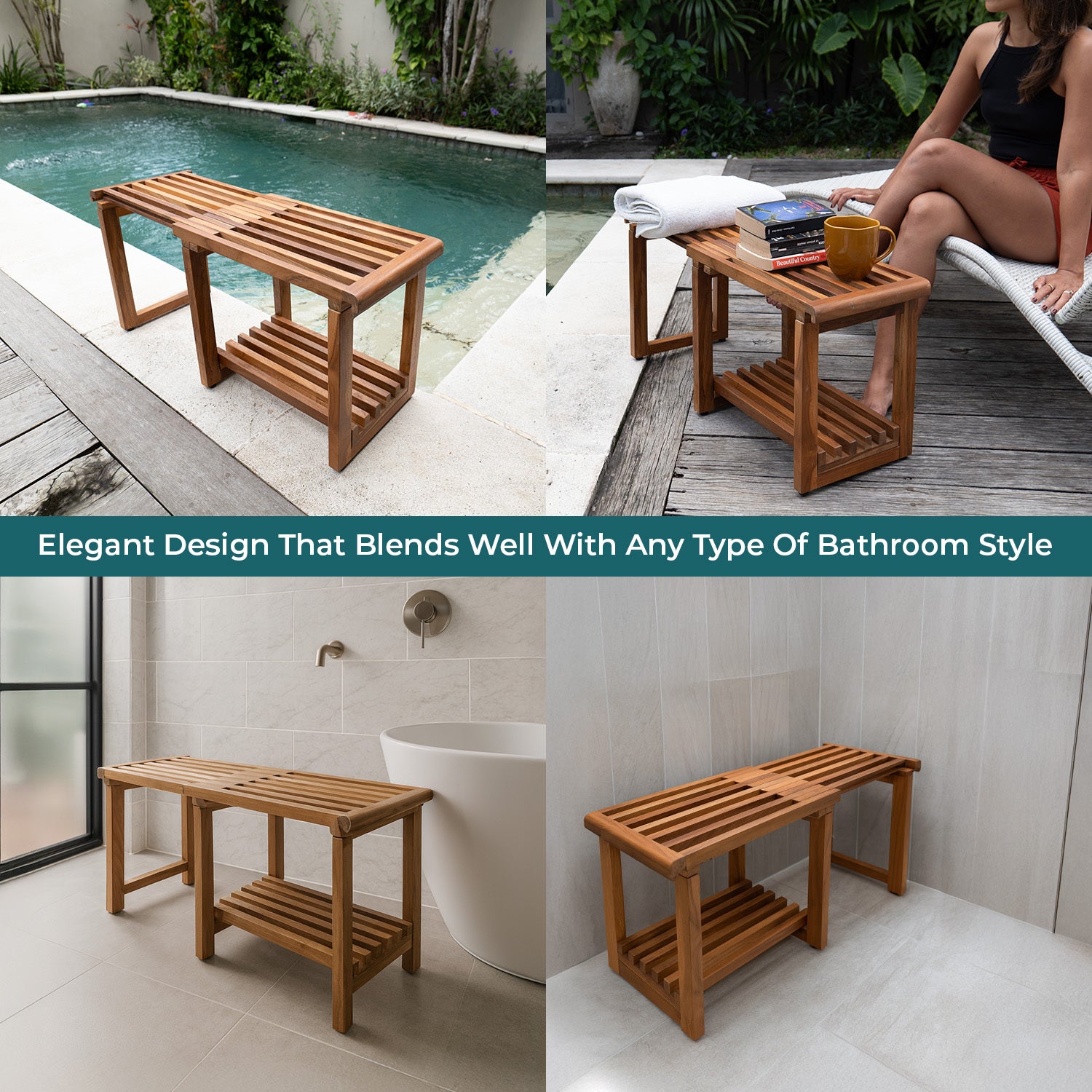 - PERFECTLY CRAFTED - Kulture's Teak Bathroom Bench are expertly handcrafted with care by skilled artisans on the island of Java. Every edge and corner is smoothed for maximum comfort, and the evenly spaced panels create a clean, beautiful look.