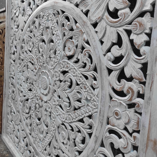 Carved Decorative Panel "Ceningan" - White Wash - 100 x 100 cm