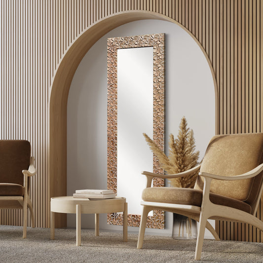 Hand Carved Mirror "Kamboja" - Natural Wash - 180 cm