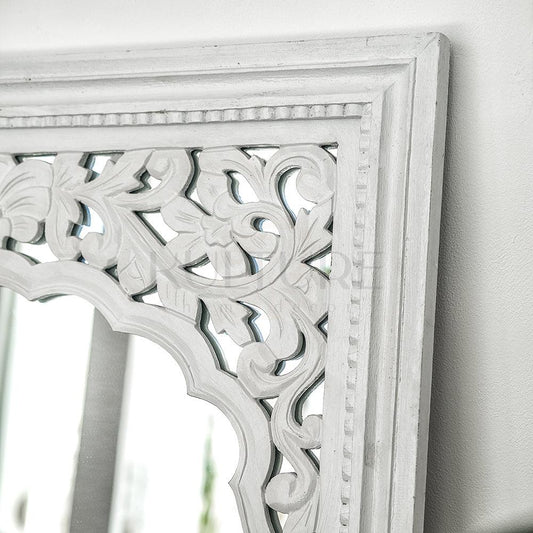 Hand Carved Mirror "Kalbu" - White - 180 cm