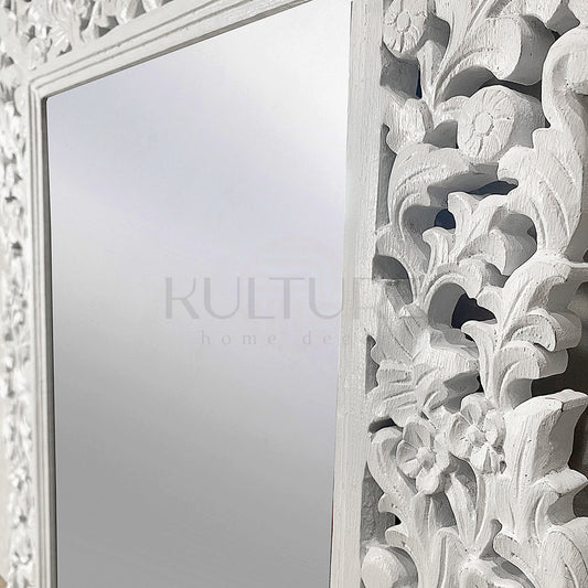 Hand Carved Mirror "Nirmala" - 180 cm - White