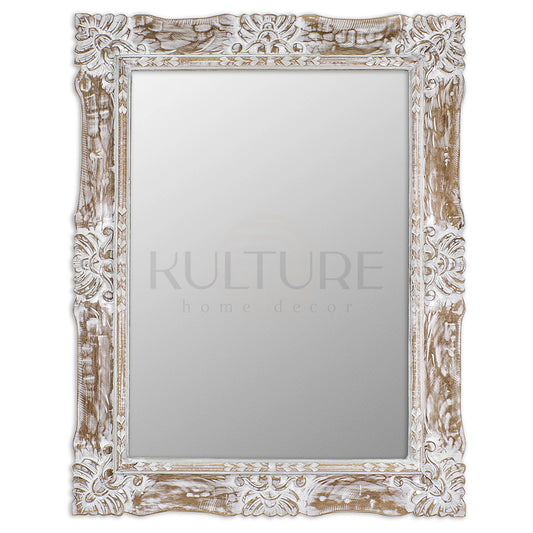 Hand Carved Mirror "Roopa" in Antic Wash - 80 cm