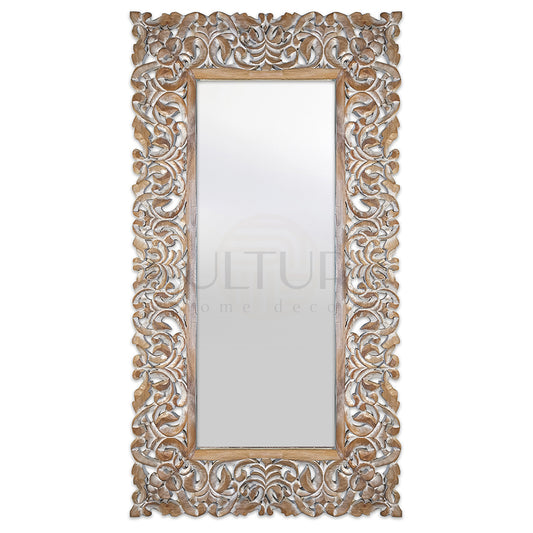Hand Carved Mirror "Semesta" - Natural Wash - 150 cm