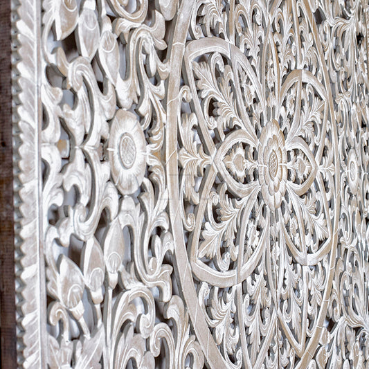 Carved Bed Headboard "Mahkota" - Natural - [US-stock]