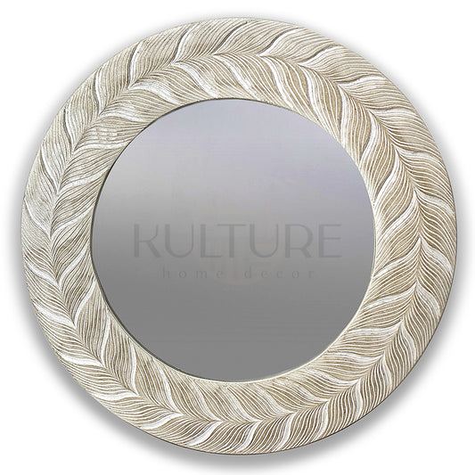 Hand Carved Mirror "Nyepi" White - 60 cm