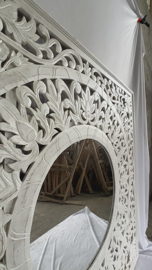 Hand Carved Mirror "Kilau" Antic-wash - 100 cm