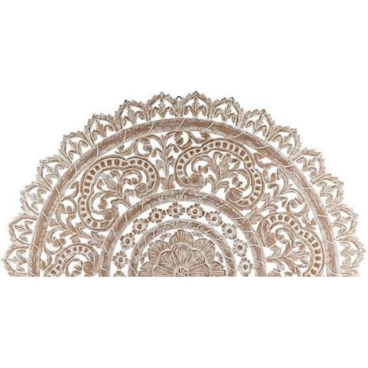 Hand carved Queen Size Half-moon Mandala Bed headboard 'Raflessia' in Antic Wash - 60 inches