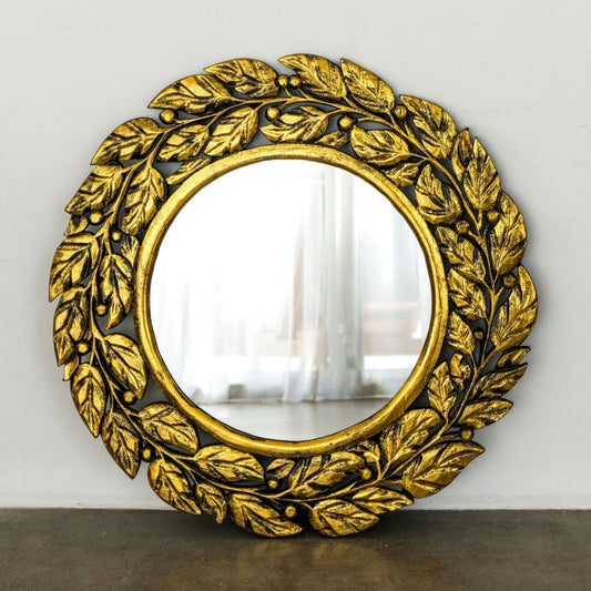Hand Carved Mirror "Surya" Gold Wash - 70 cm