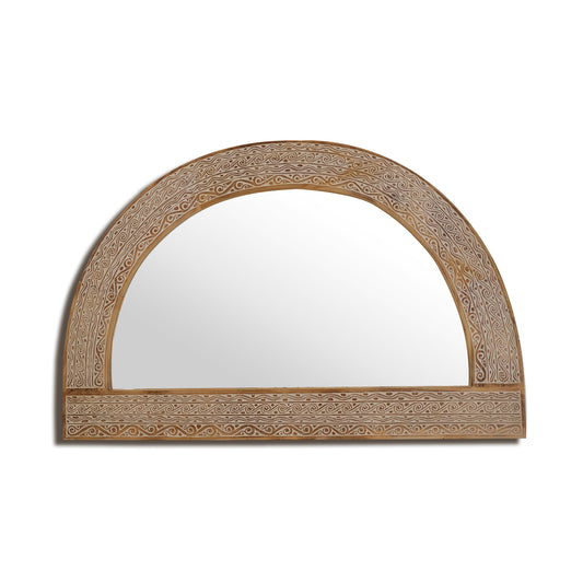 Wooden Carved Mirror Arch "Aruni" - Natural Wash - 140 x 90 cm