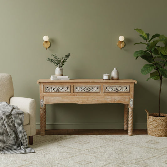 Wooden Carved Console Table "Inaranti" - Natural wash