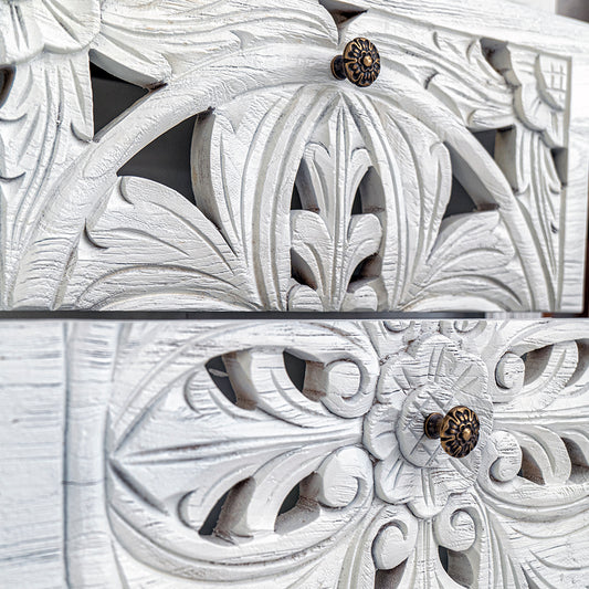 Wooden Carved Console Table "Balina" - White Wash - 150 cm