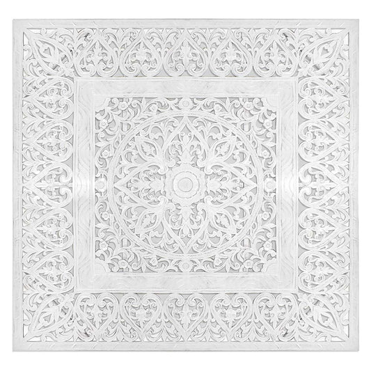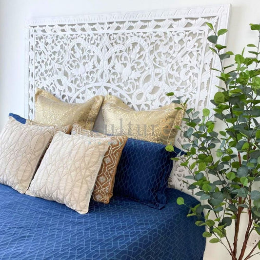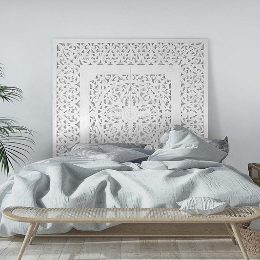 Carved Full Bed Headboard "Manusa" - White Wash