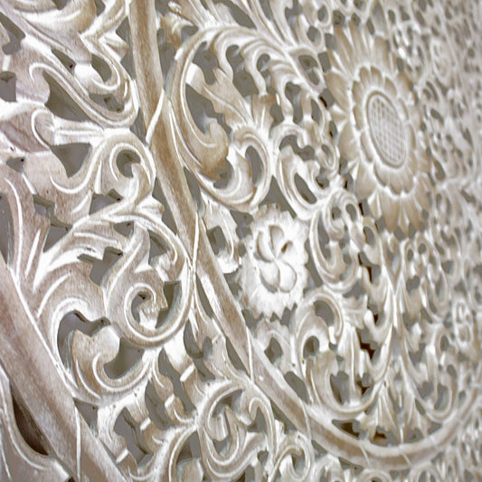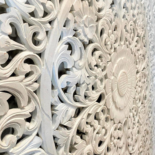 Carved Decorative Panel "Kamboja" - White - 60 cm