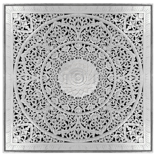 Carved Full Bed Headboard "Peony" - Monochrome