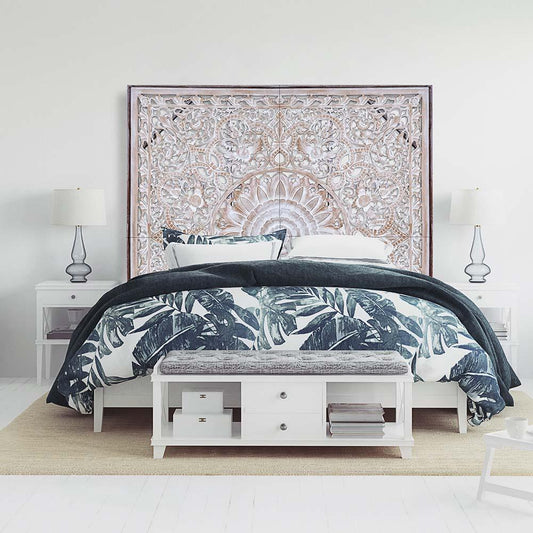 Carved Full Bed Headboard "Manusa" - White Wash- USA
