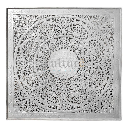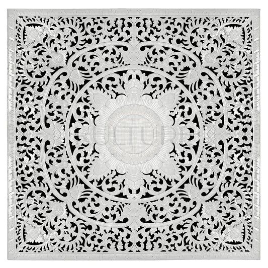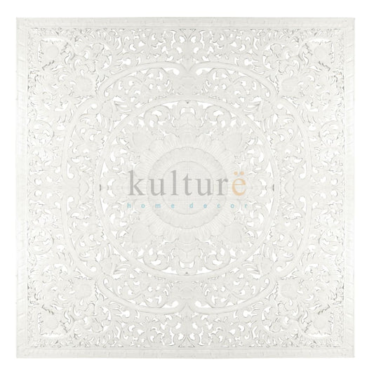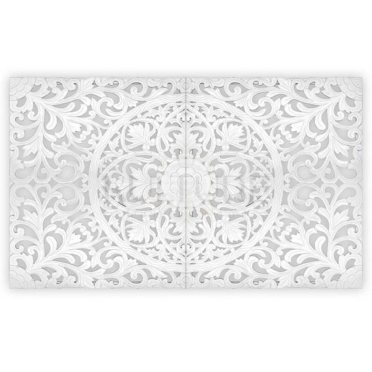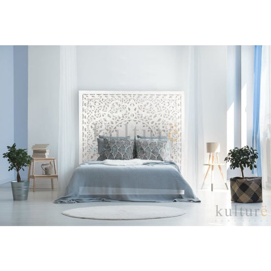 Carved Full Bed Headboard "Raflessia" - White