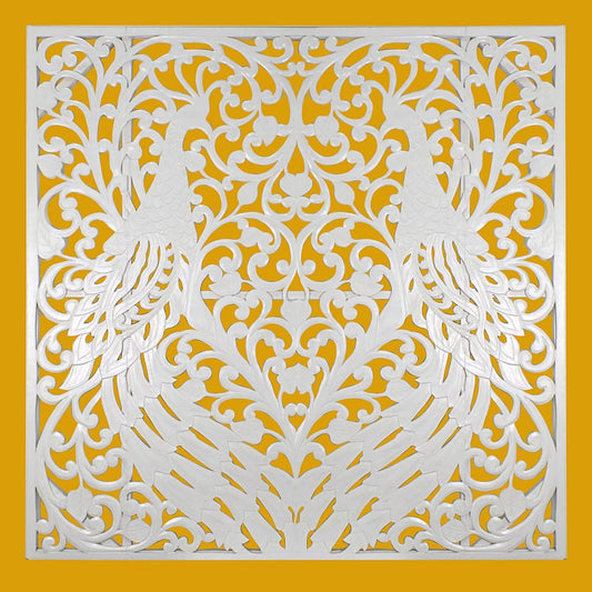 Carved Full Bed Headboard "Peacock" - USA
