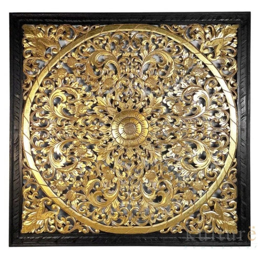 Carved Decorative Panel "Lily" - Gold and Black - 100 cm