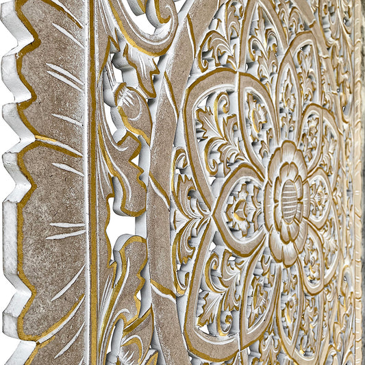 Carved Decorative Panel "Jantung" - Antic Wash & White - 100 x 100 cm