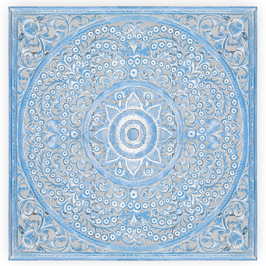 Carved Full Bed Headboard "Peony" - Blue Wash- USA