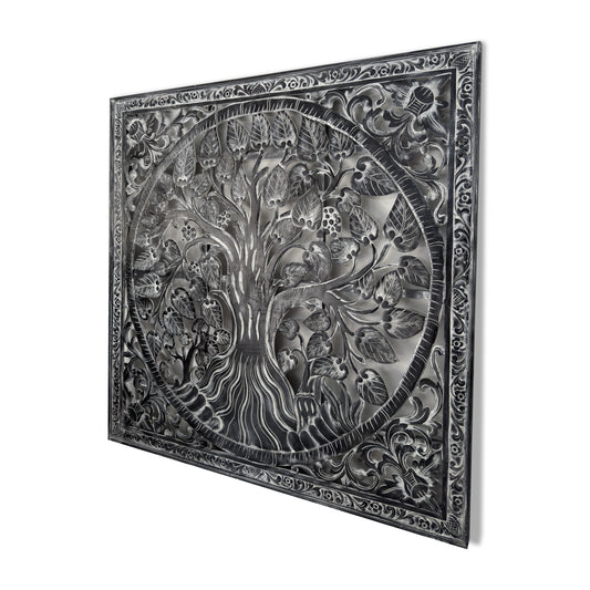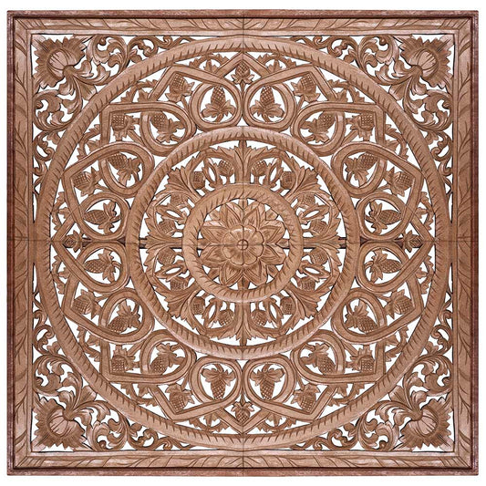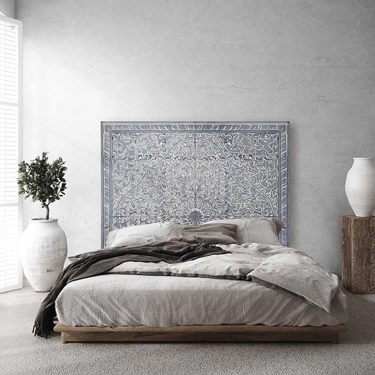 Carved Half Cut Bed Headboard "Sumber" - [US-stock]