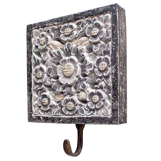 Carved Full Bed Queen Size Bed Headboard 'Malawi' - Antic Wash
