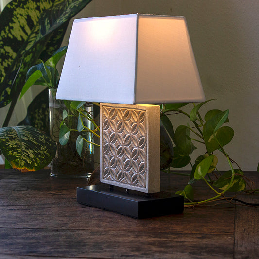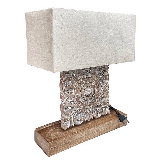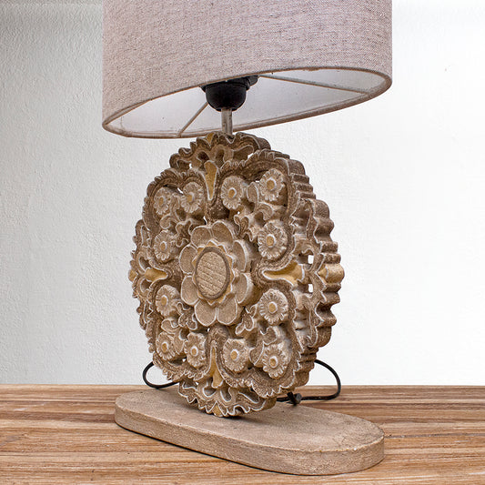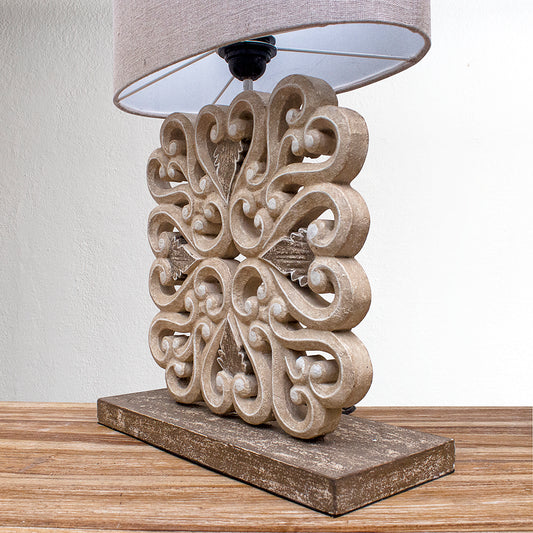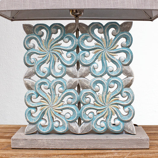 Carved Table Lamp 'Luwih' - Blue & Brown