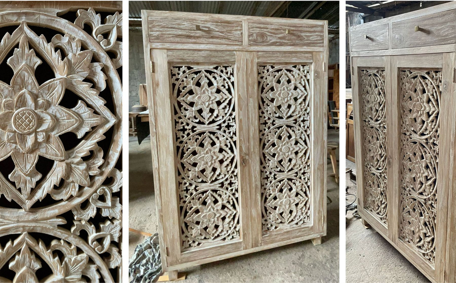 Our skilled craftsmen create unique designs for each wood carved mirror by sketching directly onto the wooden frame by hand. This requires a high level of artistic abilities and attention to detail.