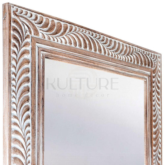Hand Carved Mirror "Kuno"- Natural Wash - 150 cm