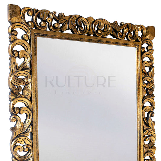 Hand Carved Mirror "Cempaka" Gold Wash - 180 cm
