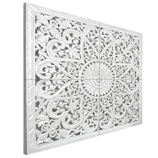 Carved Full Bed Headboard "Raflessia" - White - USA