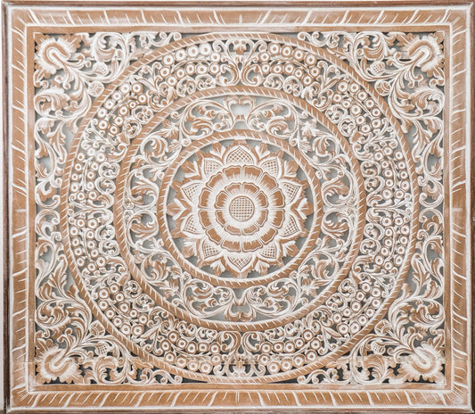 Carved Bed Headboard "Ayunina" - Antic Wash - USA