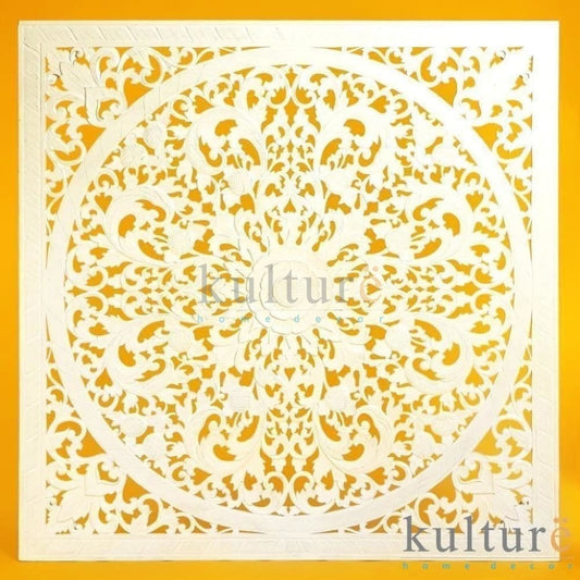 Carved Full Bed Headboard "Manusa" - White Wash- USA