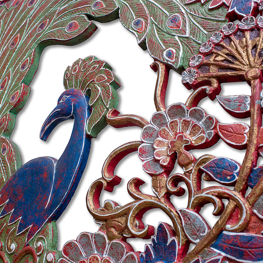 Bring an exotic resort feel to your home with this beautiful wood carving! Hand made by a local craftsman in Central Bali, this wood mandala can be placed in your living-room above your couch or in your dining room to add an exotic touch to your home decor.
