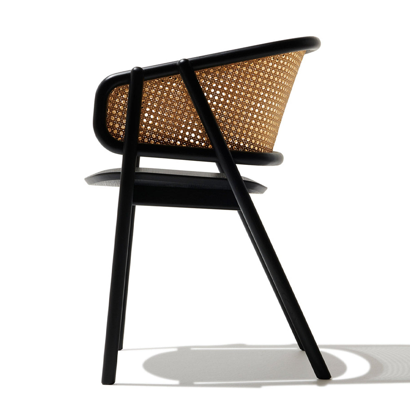 A contemporary reinvention of a popular mid-century design, the Cane Armchair hosts vibrant ash wood and curved contours for an eye-catching dining room addition.